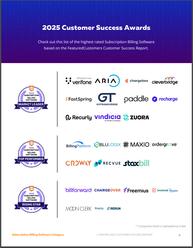 FeaturedCustomers releases the Winter 2025 Subscription Billing Software Customer Success Report.